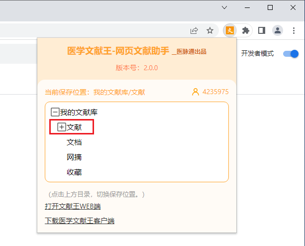1)点击医学文献王-网页文献助手拓展程序,打开插件面板,登录医学文献王账号