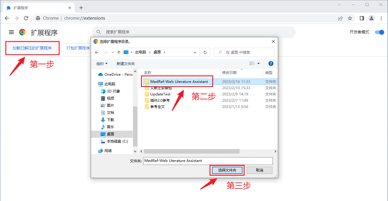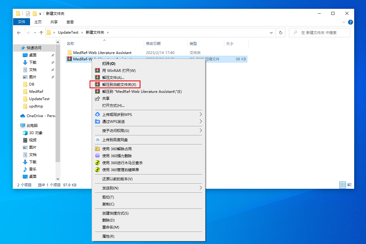 1)右键点击下载的MedRef-Web Literature Assistant.rar压缩文件,选择【解压到当前文件夹】,解压后获得文件夹《MedRef-Web Literature Assistant》,待用(注意:解压后文件夹请勿删除)