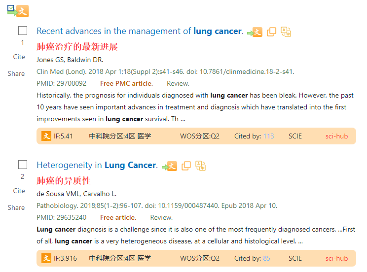 答:显示PDF的是文献王web端可以正常显示免费全文并预览的,可以点击后直接打开文献王web端。显示sci-hub可能是PubMed不提供免费全文,需要跳转到sci-hub预览,且是否可以都显示取决于sci-hub是否收录。