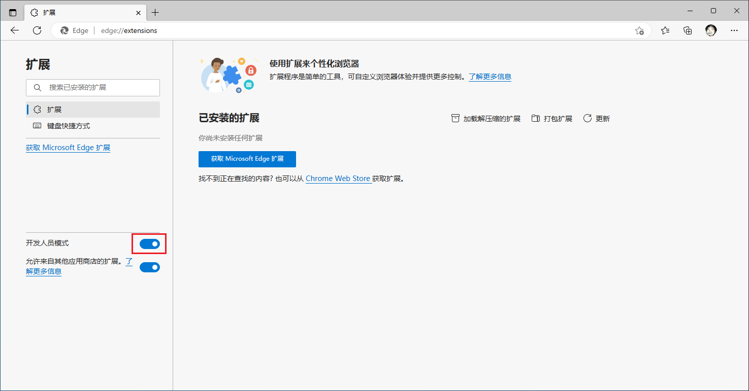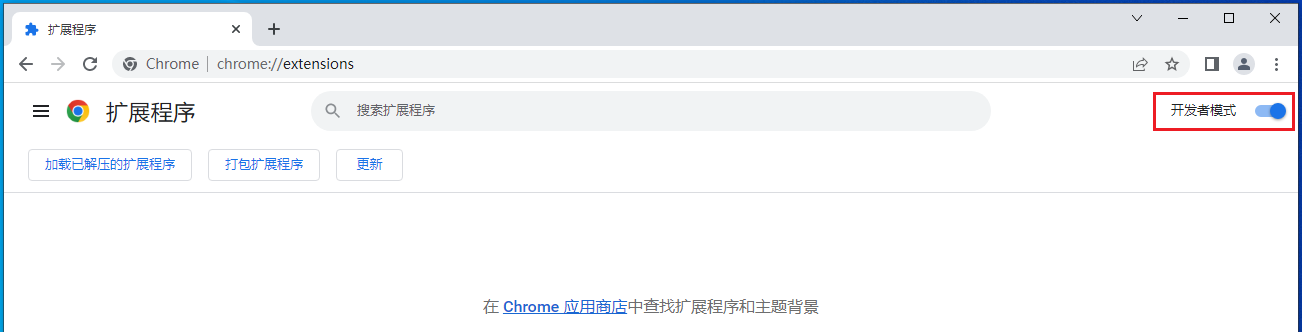 3)打开右上角的【开发者模式】按钮,然后刷新页面